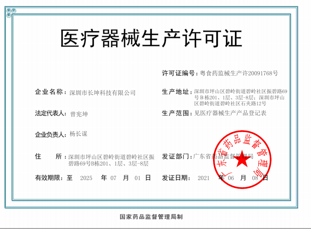 中文版|ENGLISH 服務(wù)熱線:0755-29100487 歡迎來到深圳市長坤科技有限公司官網(wǎng)!      粵深食藥監(jiān)械經(jīng)營備20151166號      粵食藥監(jiān)械生產(chǎn)許20091768號